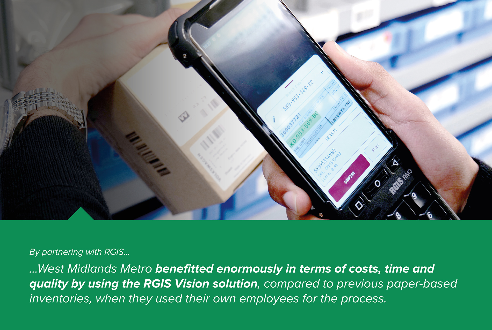 West Midlands Metro partnered with RGIS to complete the warehouse product code inventory project using RGIS Vision, and provided the following: